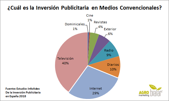 El nudo que posee este canal de comunicación es que es difícil medir su retorno y no puedes aplicar una correcta segmentación de tu público objetivo. Es para marcas agroalimentarias que poseen un producto de consumo básico y generalizado en la sociedad.